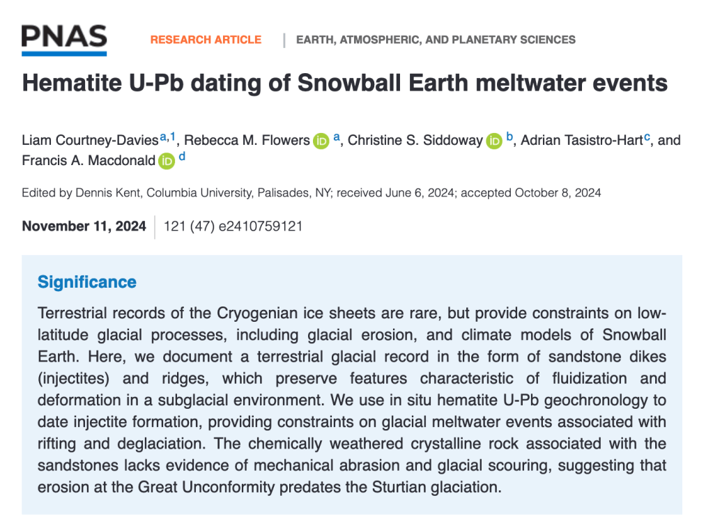 LIAM COURTNEY-DAVIES PUBLISHES HEMATITE U-Pb SNOWBALL EARTH PAPER IN PNAS