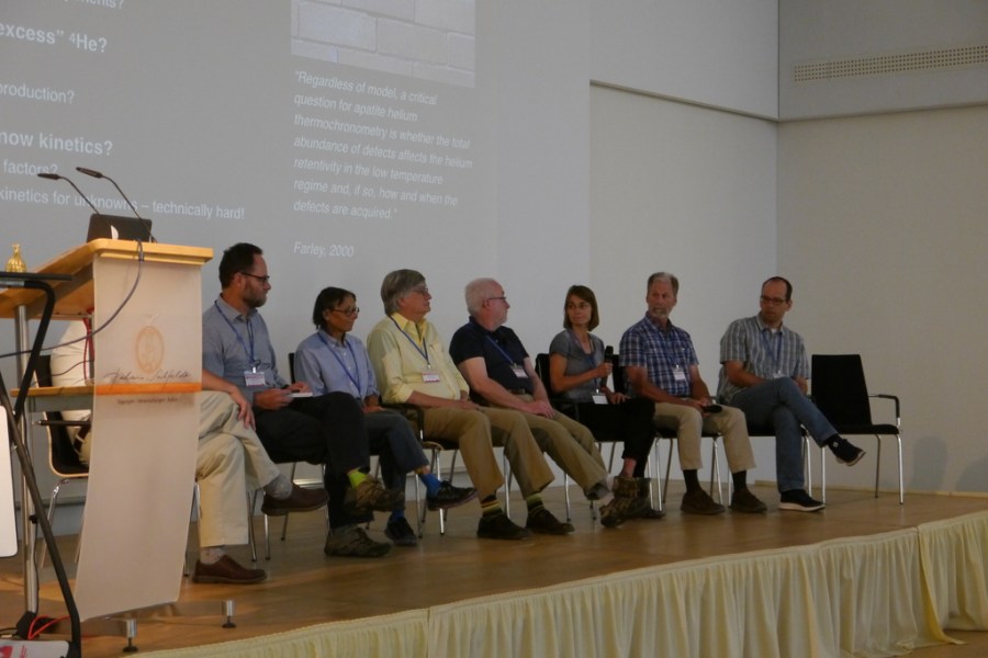 Becky on stage with other thermochronology luminaries at Thermo2014