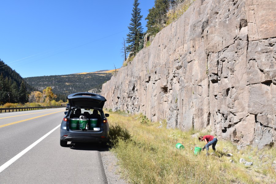 The classic Fish Canyon Tuff sampling location on a beautiful fall afternoon getting DEMOLISHED